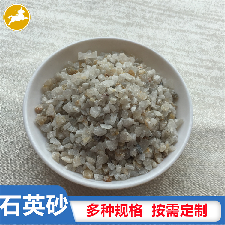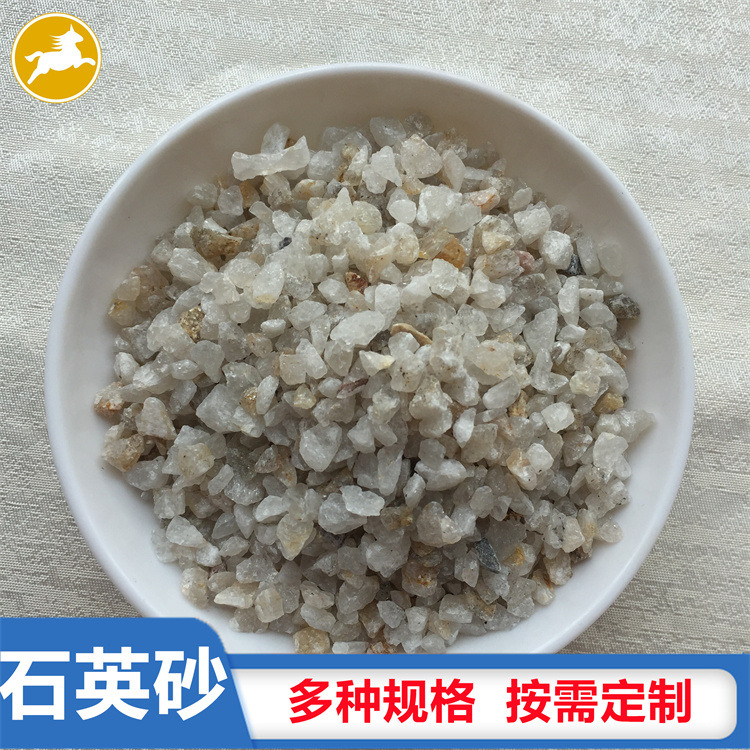 石英砂是石英石經(jīng)破碎加工而成的石英顆粒。石英石是一種非金屬礦物質(zhì),是一種堅(jiān)硬、耐磨、化學(xué)性能穩(wěn)定的硅酸鹽礦物,其主要礦物成分是SiO2。石英砂的顏色為乳白色、或無(wú)色半透明狀,莫氏硬度7。